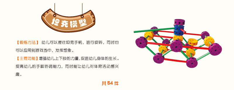 類似坦克模型這樣的鍛煉器材還有很多,而且目的在于可以讓孩子發(fā)揮充分的想象力來(lái)做出各種各樣的模型,孩子們?cè)谕娴倪^程可以得到身體各方面的鍛煉。