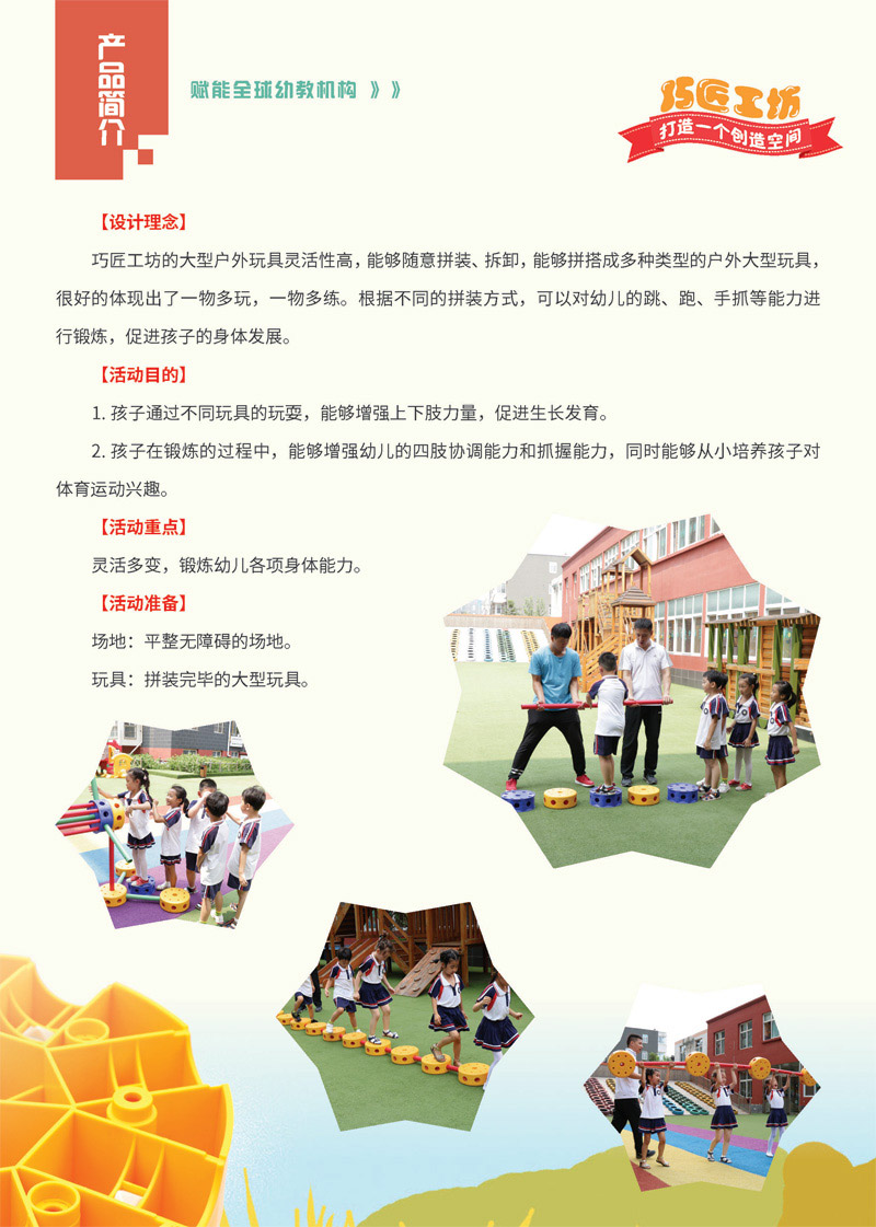 桌面益智玩具 戶外玩教具 運(yùn)動(dòng)課程 夢(mèng)幻組件 特色構(gòu)建室 巧匠工坊視頻展示 巧匠工坊說(shuō)明書