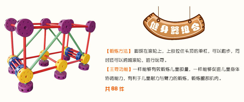 【健身器組合主要功能】一樣能夠有效鍛煉兒童膽量,一樣能夠促進兒童身體協調能力,有利于兒童耐力與臂力的鍛煉,鍛煉腿部肌肉。